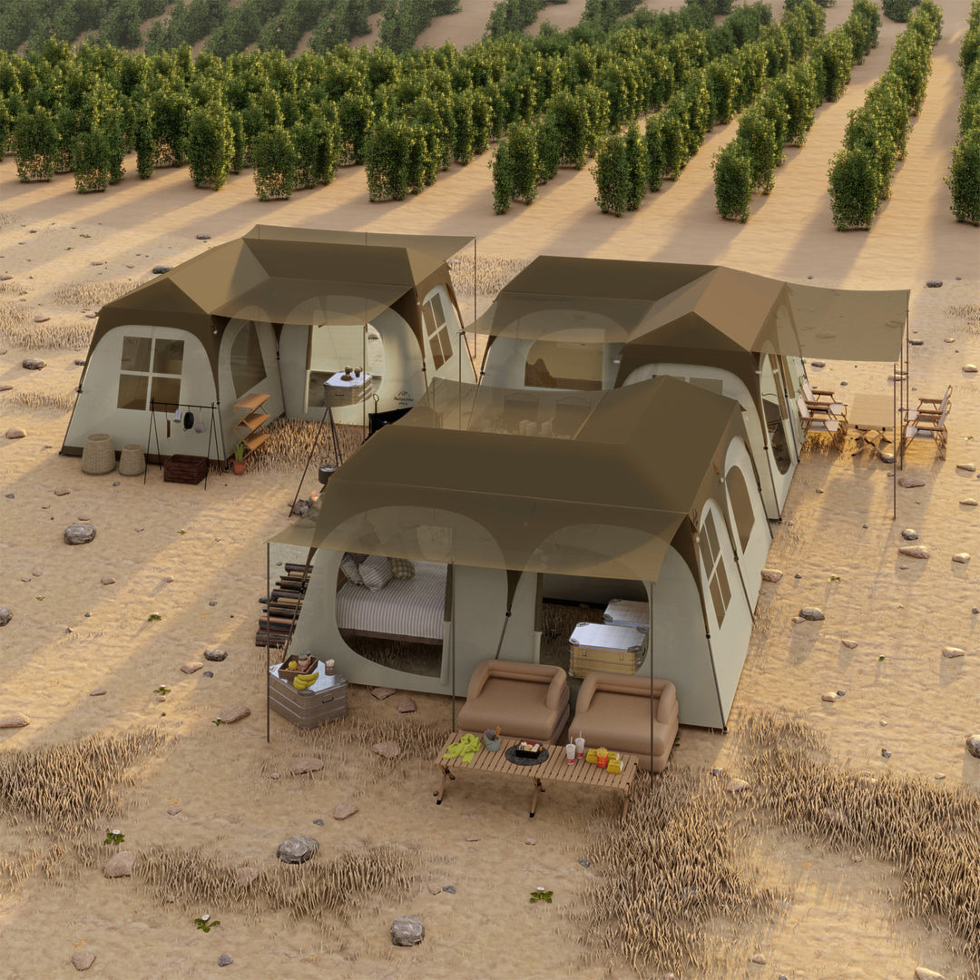 Two Bedrooms and One Hall: This tent features two spacious bedrooms and one hall. making it perfect for families or groups looking to enjoy the outdoors without sacrificing personal space. The design allows for a comfortable and happy outdoor living experience.