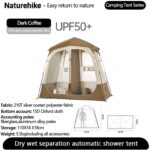 - Windproof & Sunscreen Protection: Engineered for resilience against the elements. the tent’s fabric incorporates a reverse side that undergoes a specialized shading and silver coating process. This not only imparts wind resistance but also provides waterproof capabilities. shielding you from unexpected drizzles or heavy downpours. Additionally. the silver coating acts as an effective sunscreen. blocking harmful UV rays and reducing glare. ensuring a cooler and more comfortable environment inside even on bright sunny days.